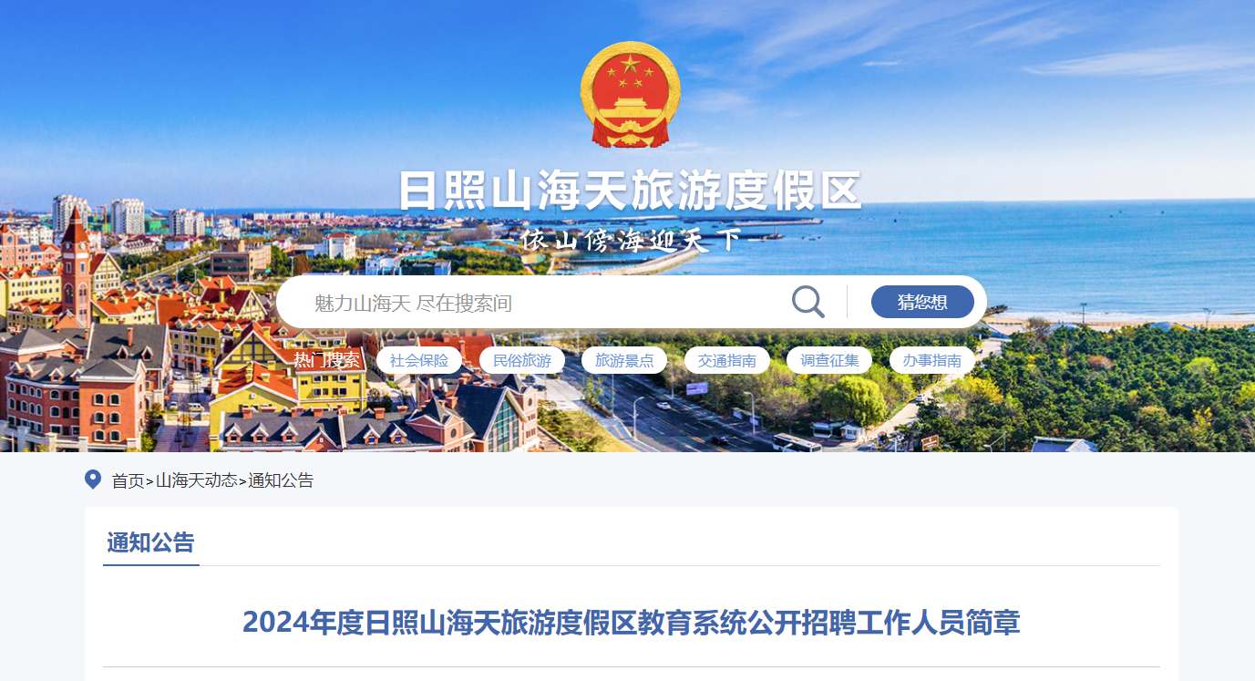根据事业单位公开招聘和人员控制总量备案管理有关规定,结合我区教育系统岗位空缺情况和工作需要,现将2024年度日照山海天旅游度假区教育系统公开招聘工作人员有关事项公告如下: